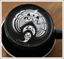 毎年この時期に現れるハロウィンデザインのブラックラテ。ほんのり甘さがある味わい。デザインもお楽しみください。