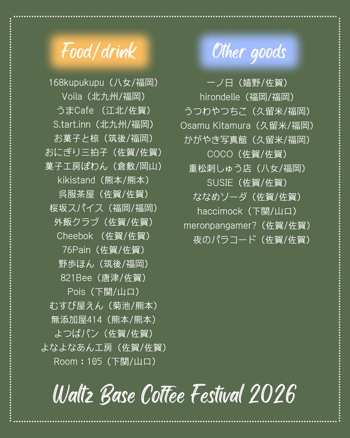 3月8日(日)佐賀市・こころざしの森にて「WaltzBase Coffee Festival(ワルツベースコーヒーフェスティバル)」初開催!