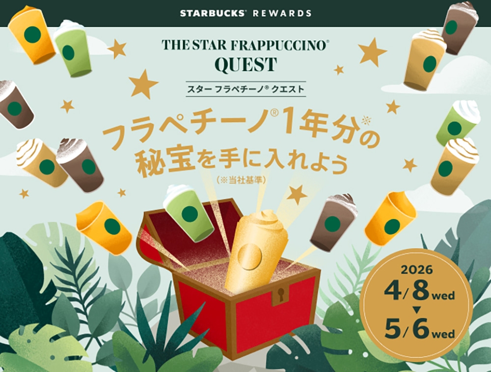 スターバックス日本上陸30周年を記念し、対象商品を楽しみながら参加できるデジタル企画「スター フラペチーノ® クエスト」を、2026年4月8日(水)〜5月6日(水)の期間で開催します。
