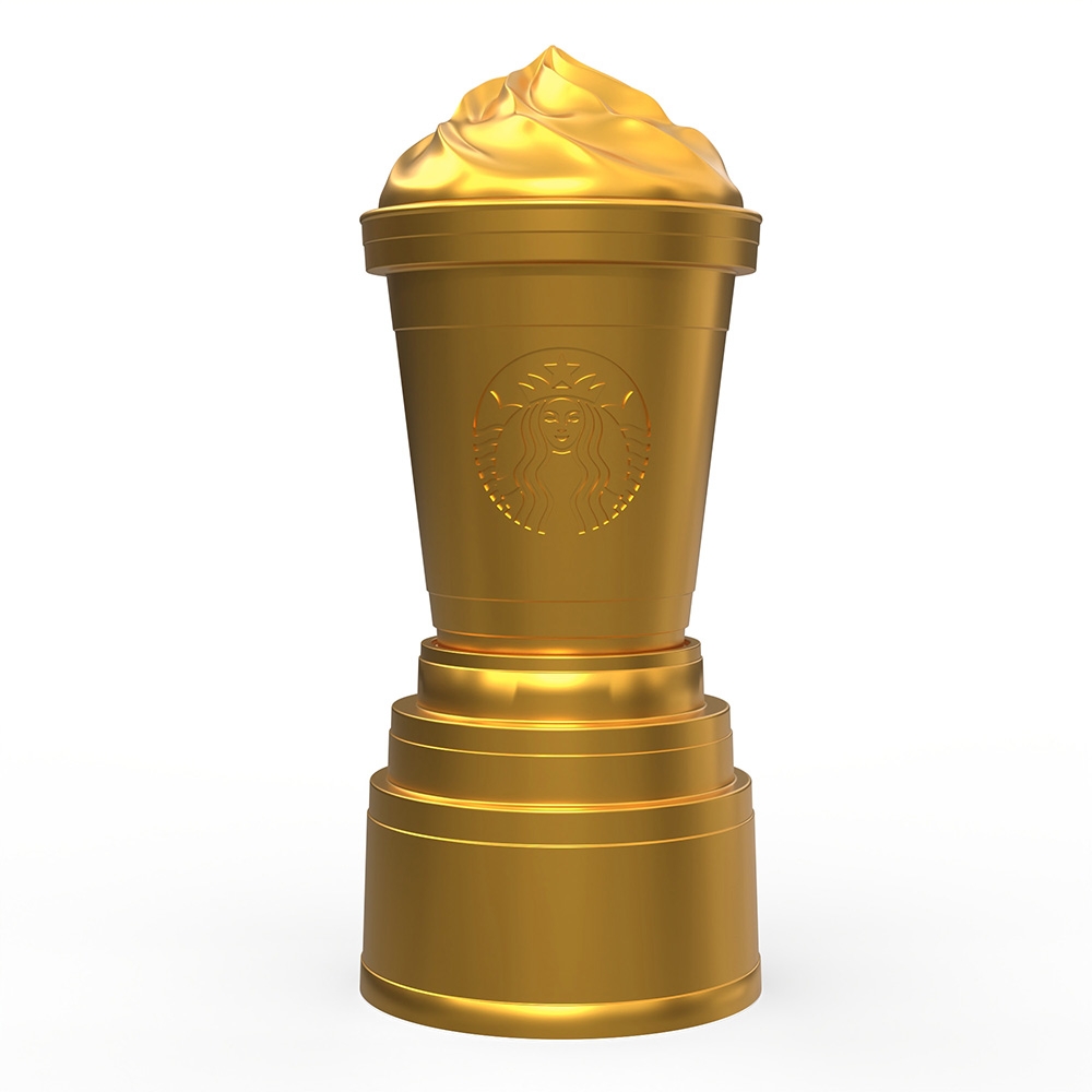 この“金のフラペチーノ像”は、有田焼の名窯の熟練職人が、手仕事で丁寧に仕上げた特別仕様のフラペチーノ像です。