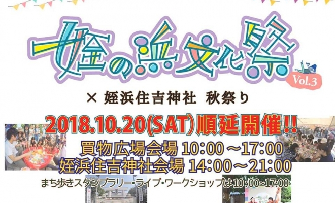 毎年回を重ねるごとに規模が大きくなってきた「姪の浜文化祭」。第3回となる今回は9/30(日)に開催予定でしたが、台風24号・25号の接近により10/20(土)に順延することになりました。姪の浜の人気店や作家さんなど、およそ30店…