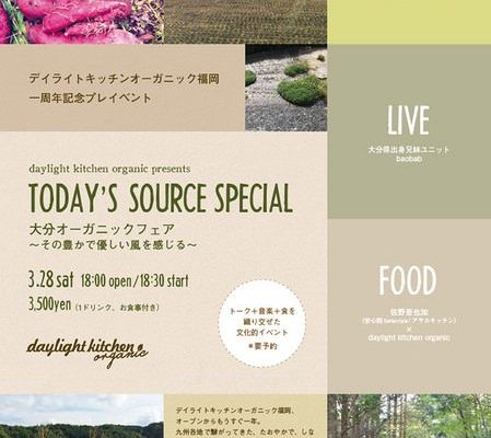【博多駅前】3/28(土)デイライトキッチンオーガニック1周年記念プレイベント「大分オーガニックフェア」開催!