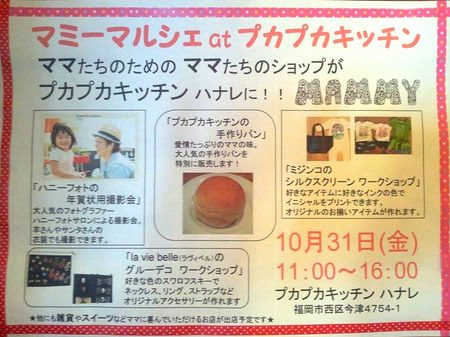 【今津】10/31(金)プカプカキッチンにて「マミーマルシェ」開催!