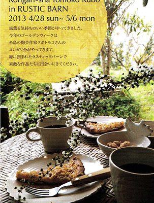風薫る気持ちのいい季節がやって来ました。今年のゴールデンウイークは糸島の陶芸作家クボトモコさんのコンガリ舎がやってきます。緑に囲めれたラスティックバーンで素敵な作品たちに出会いにきて下さい。コンガリ舎 クボトモコ in RUSTIC…