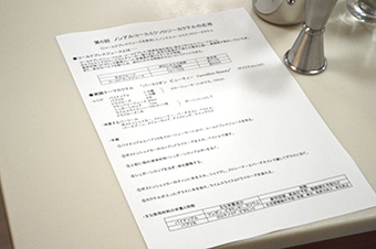 | 学生のテーブルにはレシピとカクテルの器具がスタンバイ。今回作るのはコールドプレスジュースを使用したノンアルコールミクソロジーカクテル。コールドプレスジュースとは低速低音圧搾法で作られたジュースのこと。従来の高速式や遠心分離式と違い摩擦熱が発生しづらいため、食材が持つビタミンや酵素といった栄養素が残りやすく、余分なパルプが取り除けるので消化も早いのが特長なのです。 | ||