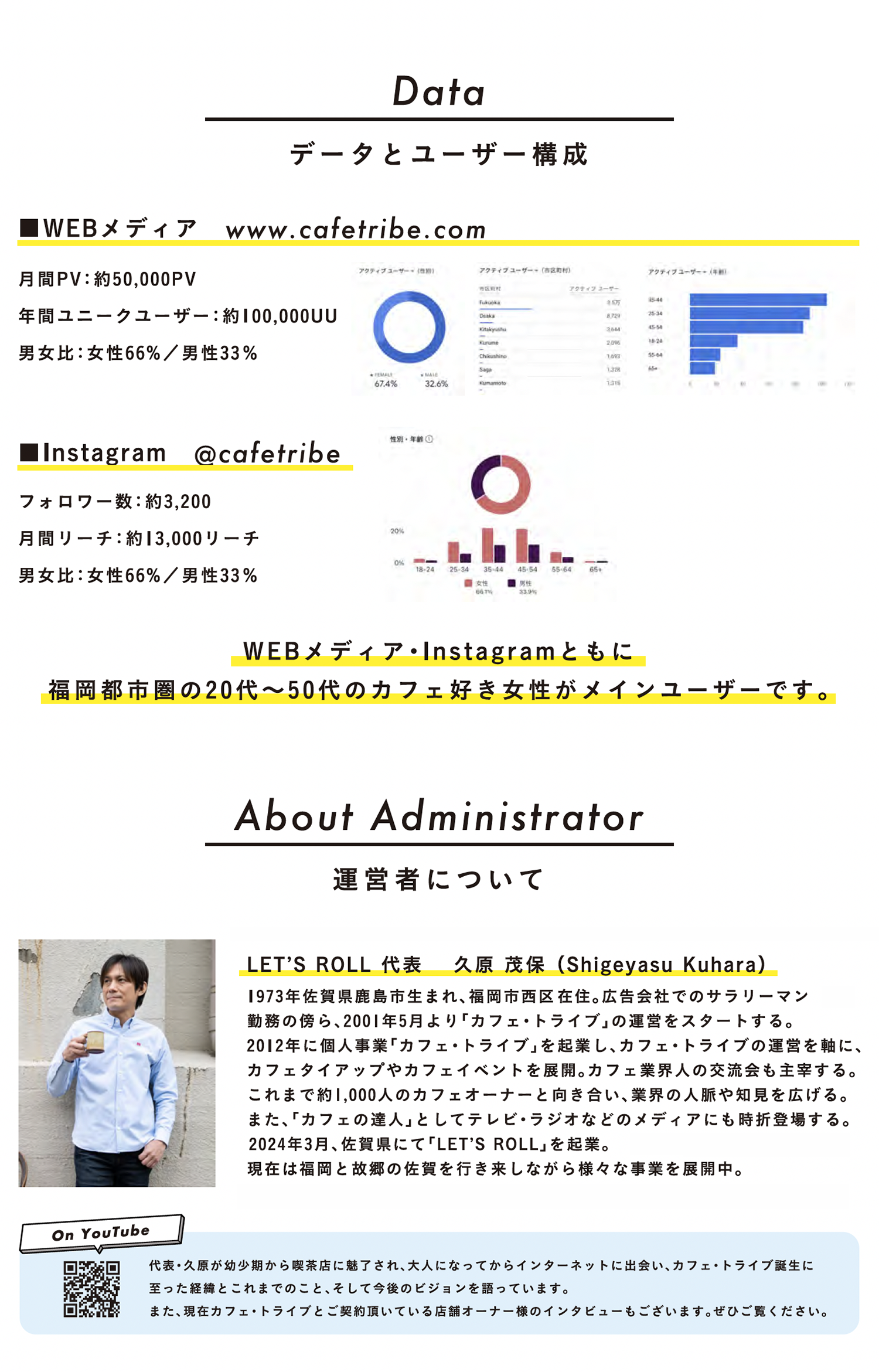 当サイト「カフェ・トライブ」の媒体資料です。 カフェオーナー様・カフェ運営事業者様、日々のカフェ運営のパートナーとして是非カフェ・トライブのサービスをご検討くださいませ。