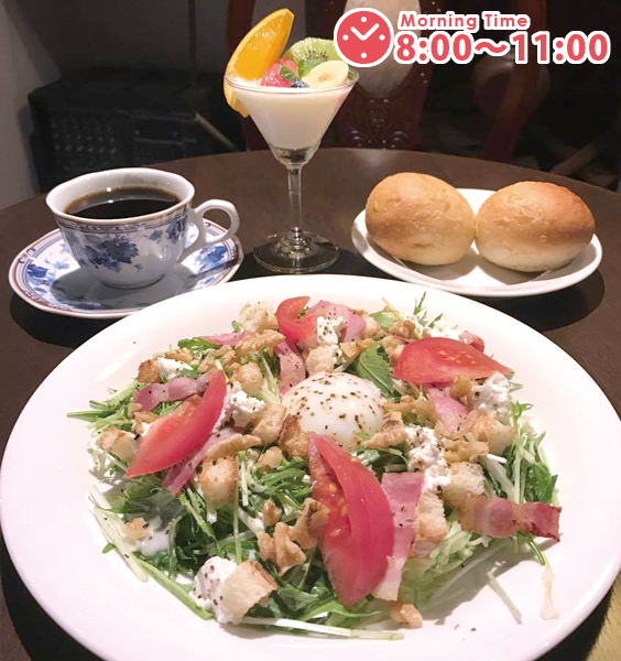 バターロール2個とサラダ、コーヒーor紅茶のヘルシーセット。