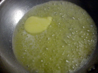 鍋にバターをとかし、醤油をいれて煮詰めます。 |